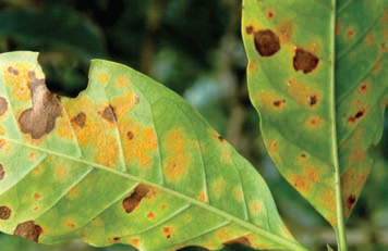 咖啡驼孢锈菌,即叶片锈病,会导致熟前落叶,显著减少来年产量;而咖啡生尾孢菌,即褐斑病,也会影响果实,使其难以出售。
